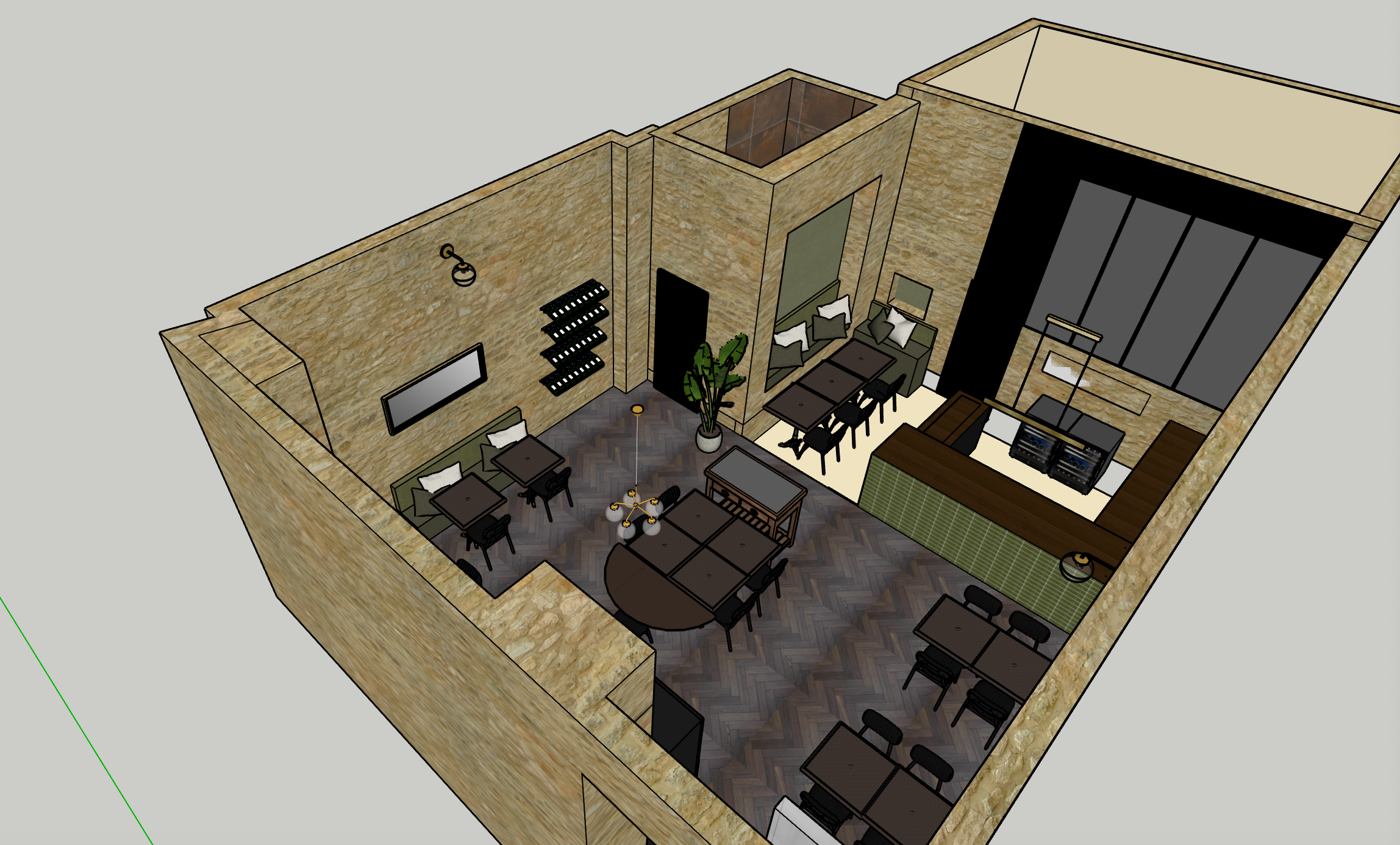 Redonner à l’établissement son charme d'origine avec pierres apparentes et matériaux bruts.